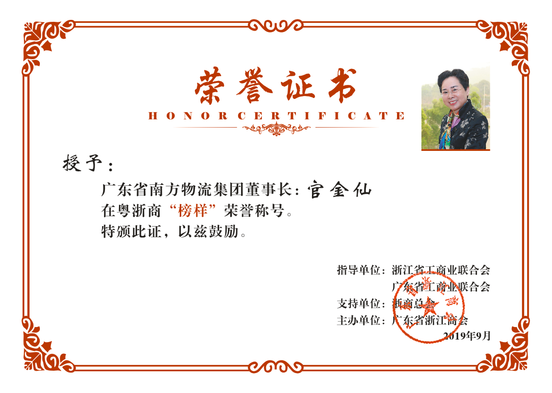 据悉, 本次在粤浙商“榜样”评选活动自4月份启动以来,得到了在粤广大浙商的积极响应,踊跃报名,并赢得了145.3万人次参与投票,产生了很好的社会效益和造势作用,彰显了在粤浙商的影响力、凝聚力和号召力。经过网上投票以及粤、浙两省工商联、浙商总会、广东省浙江商会及专家的评审,官金仙董事长脱颖而出,成为“榜样”。
