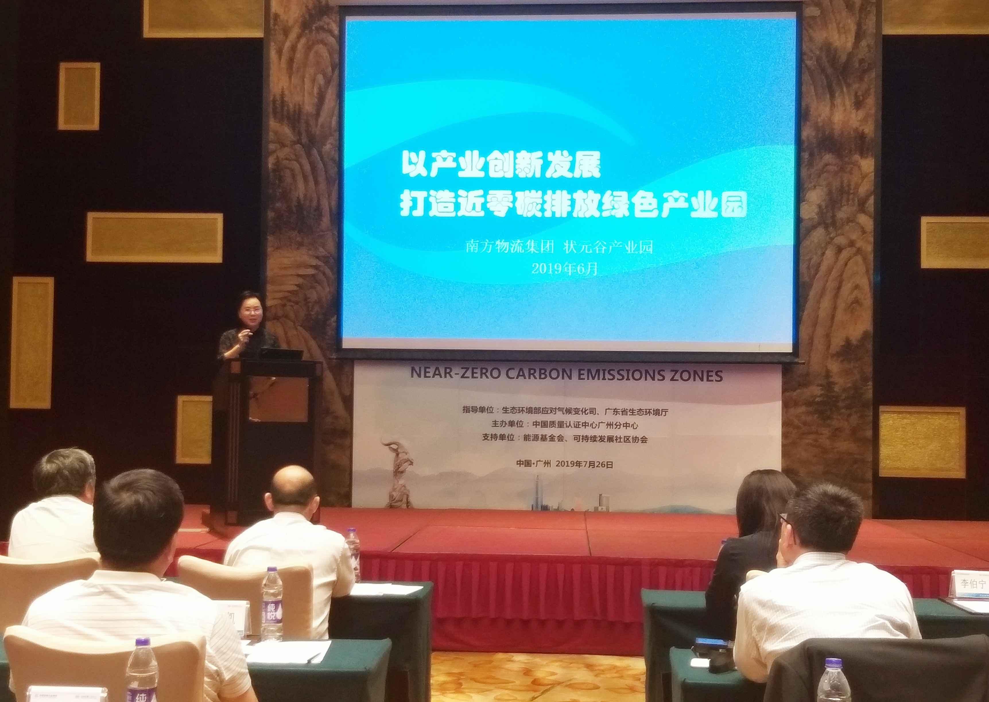7月26日,广东省近零碳排放区示范工程建设研讨会在广州市花都区皇冠假日酒店举行,官金仙董事长受邀参加会议,并作为唯一的企业代表在会上介绍了状元谷近零碳排放示范工程,分享其建设成功经验。